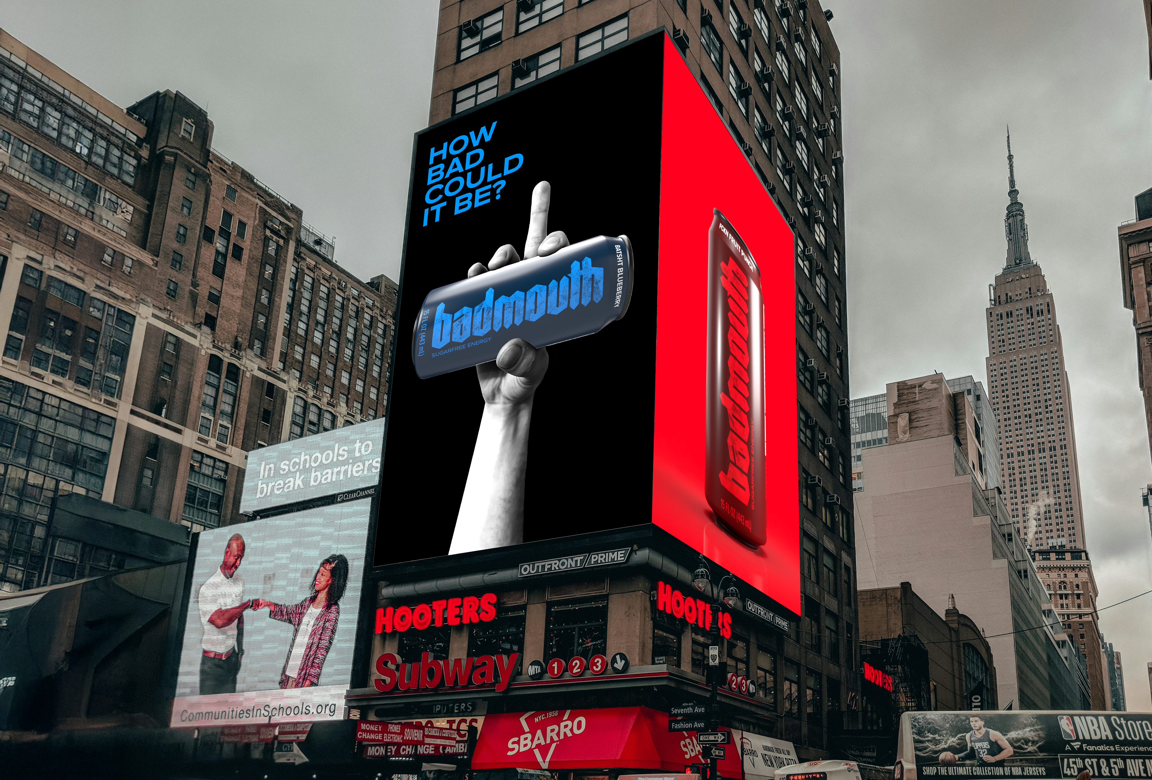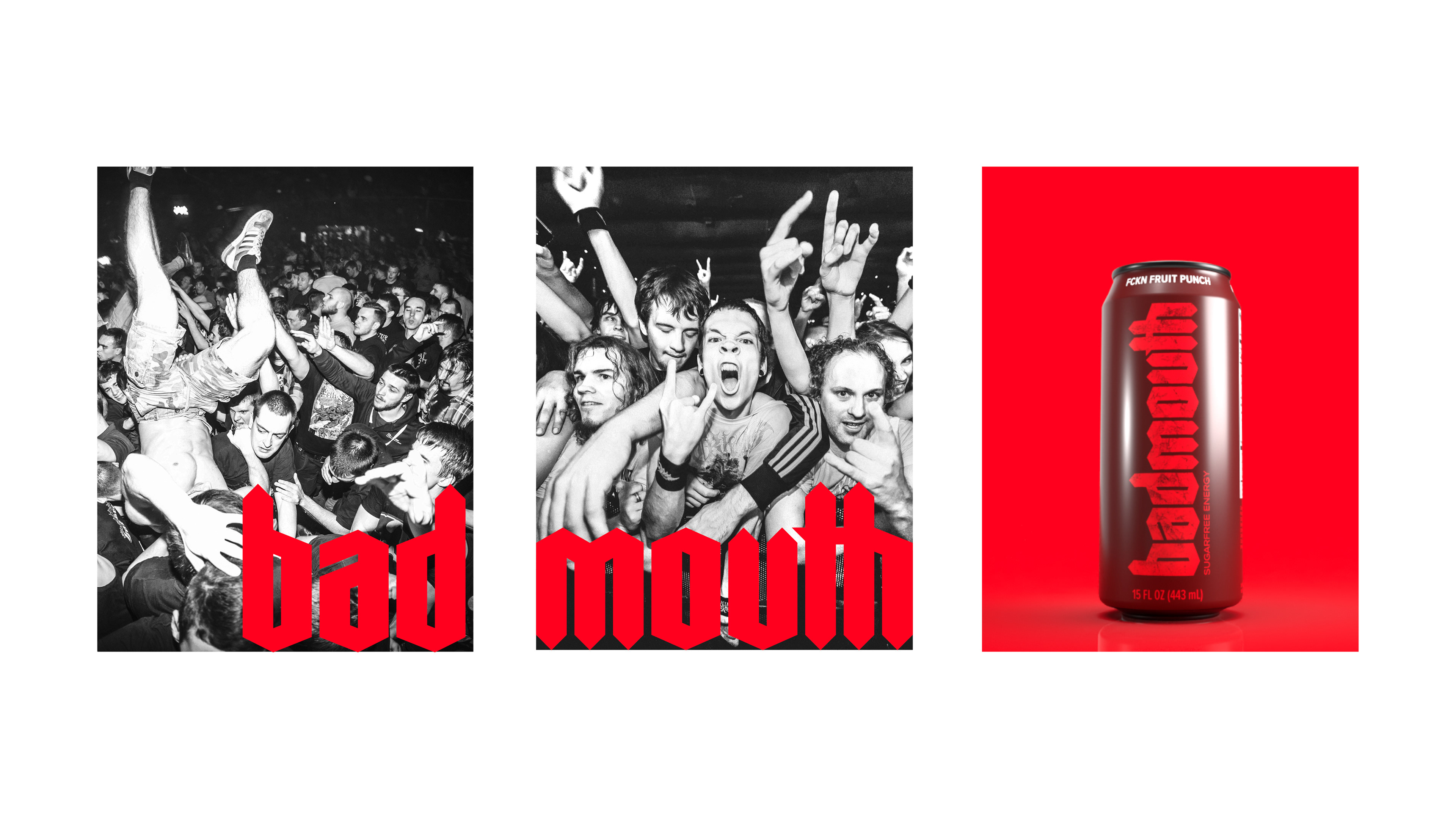 Designed a name, identity, packaging, and advertisement for a fictional energy drink company. The wordmark is fully custom and based on blackletter type.