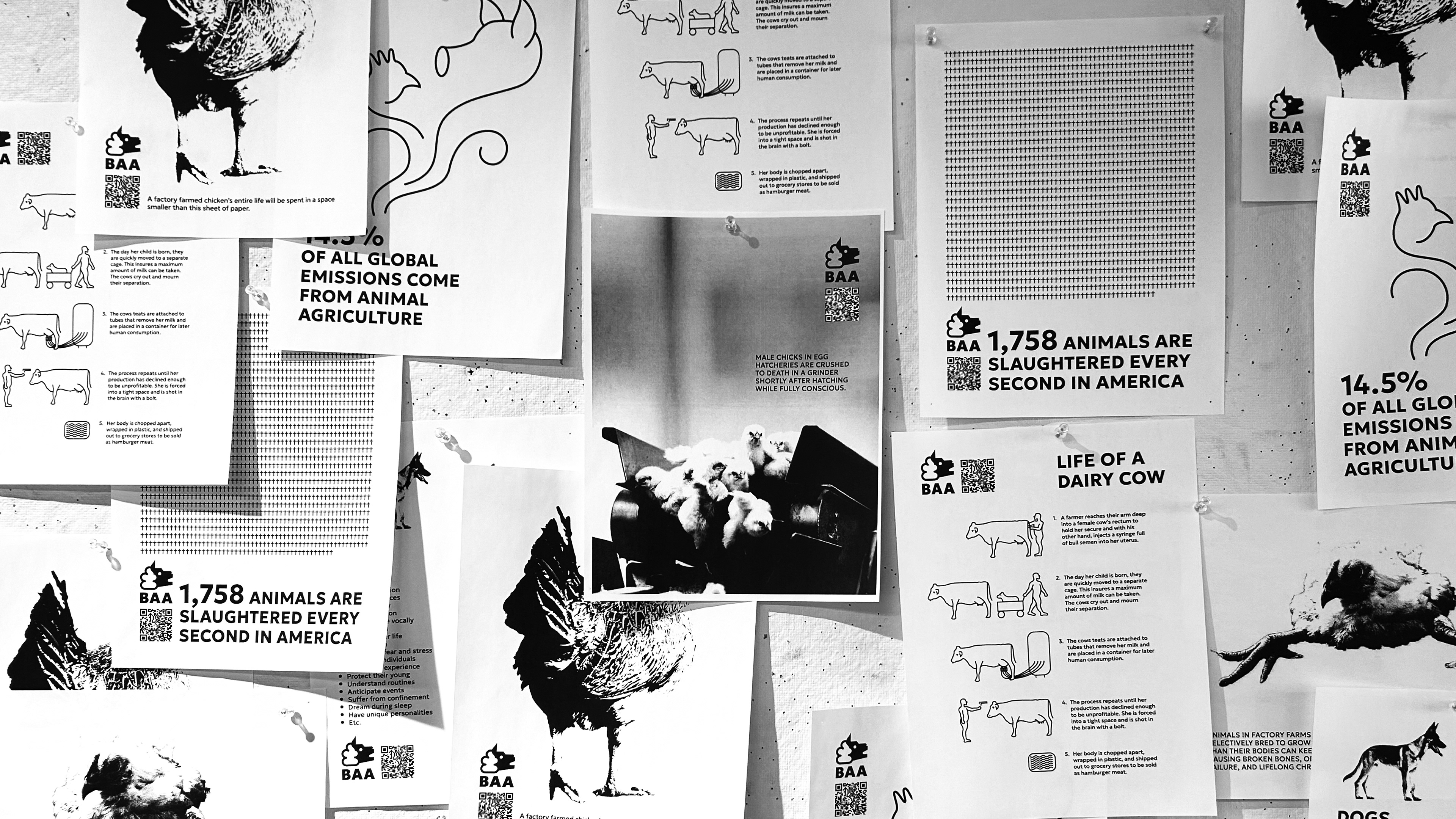 Boycott Animal Agriculture is a website offering free downloadable PDF flyers that vegans can print and share within their communities. All flyers are designed in black and white, optimized for letter-sized paper to keep printing affordable and accessible. BAA is oriented towards educating the public about the practices within animal agriculture, empowering individuals to make informed decisions.